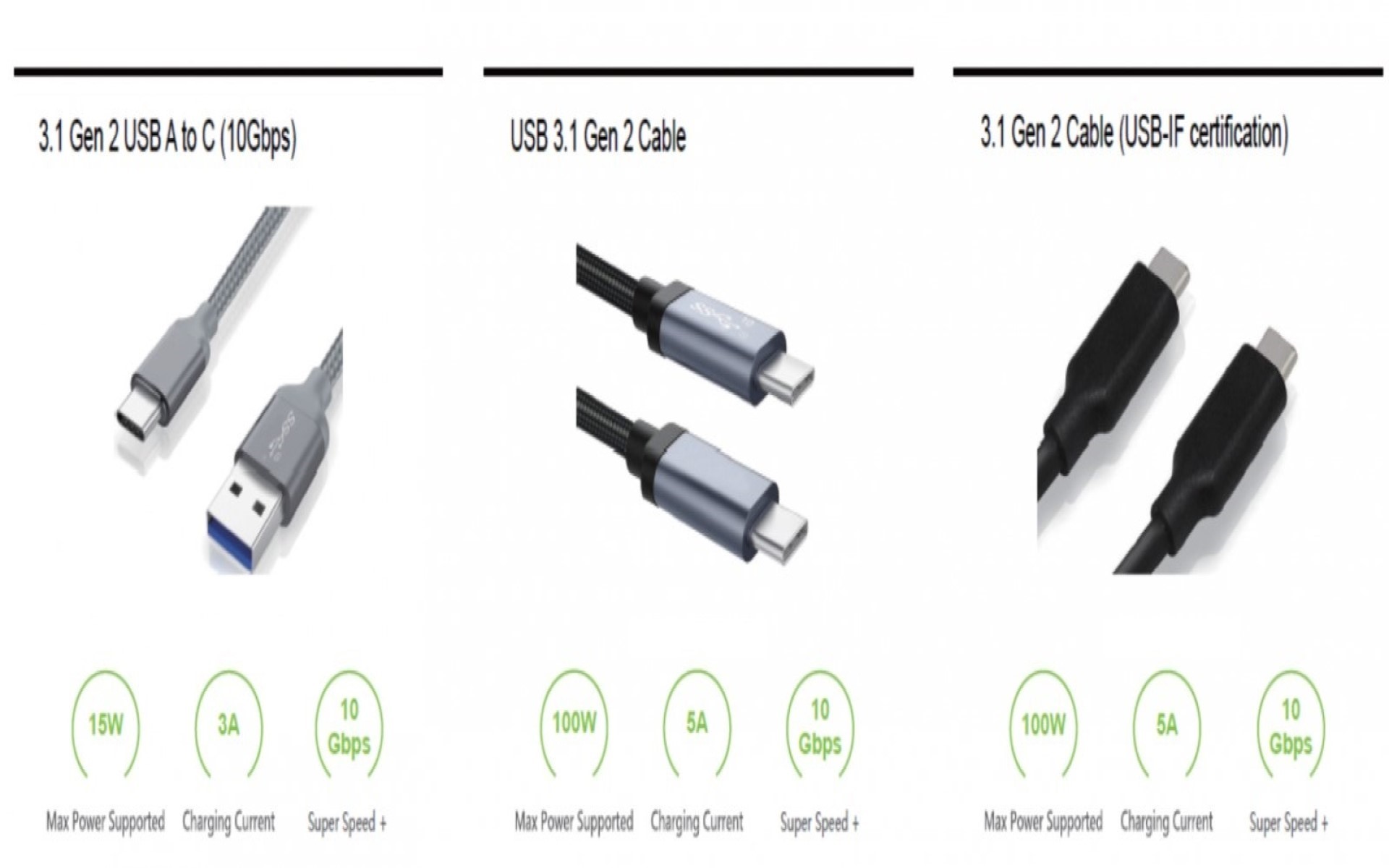 USB 3.1 Type C Gen 2, 5A 20V 100W